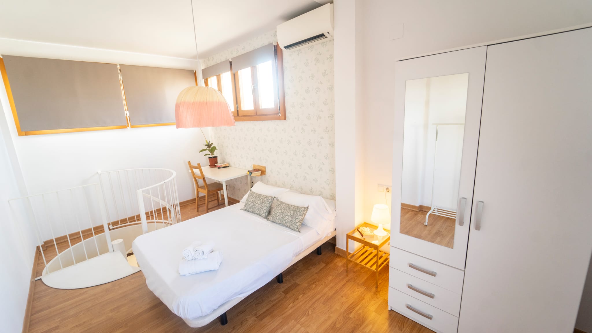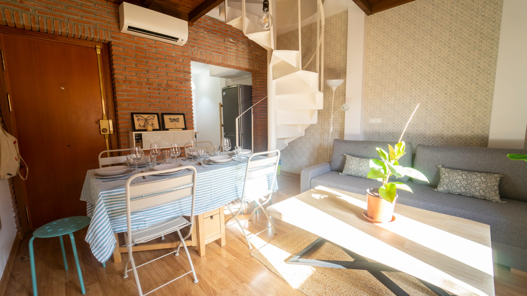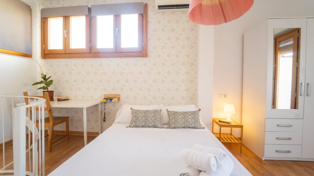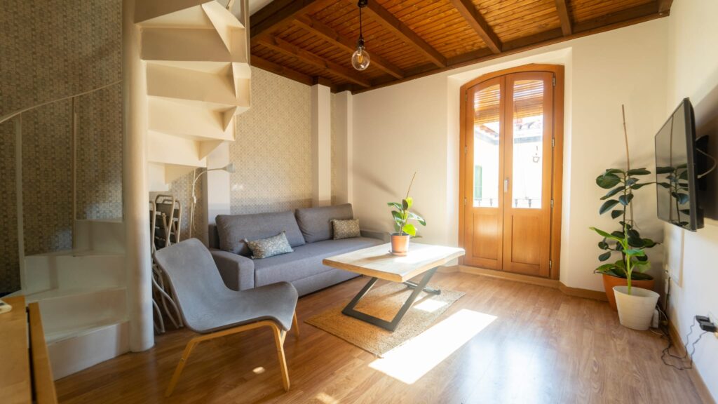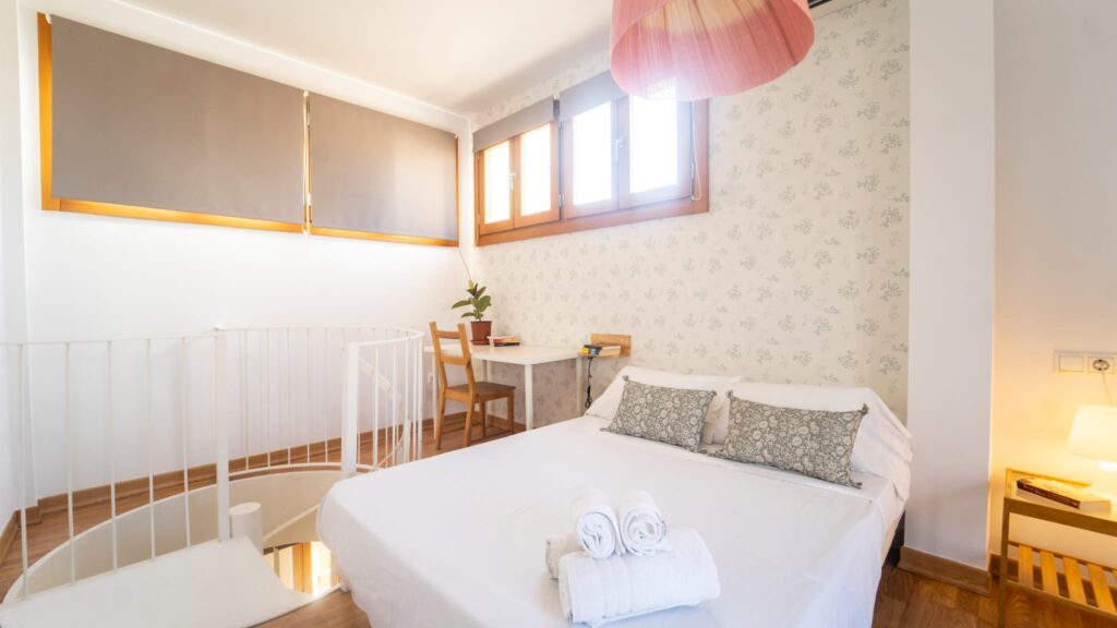 Apartamento tipo dúplex con un diseño moderno y elegante, donde la luz natural es protagonista. Distribuido en dos plantas, ofrece un ambiente acogedor y funcional, ideal para una estancia confortable en el centro de la ciudad.