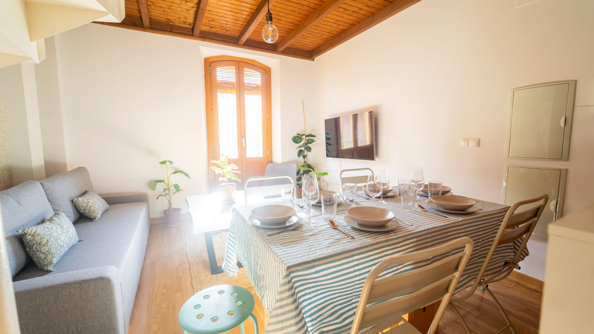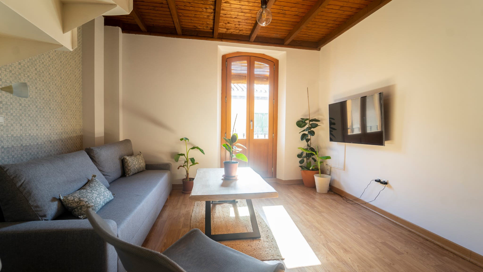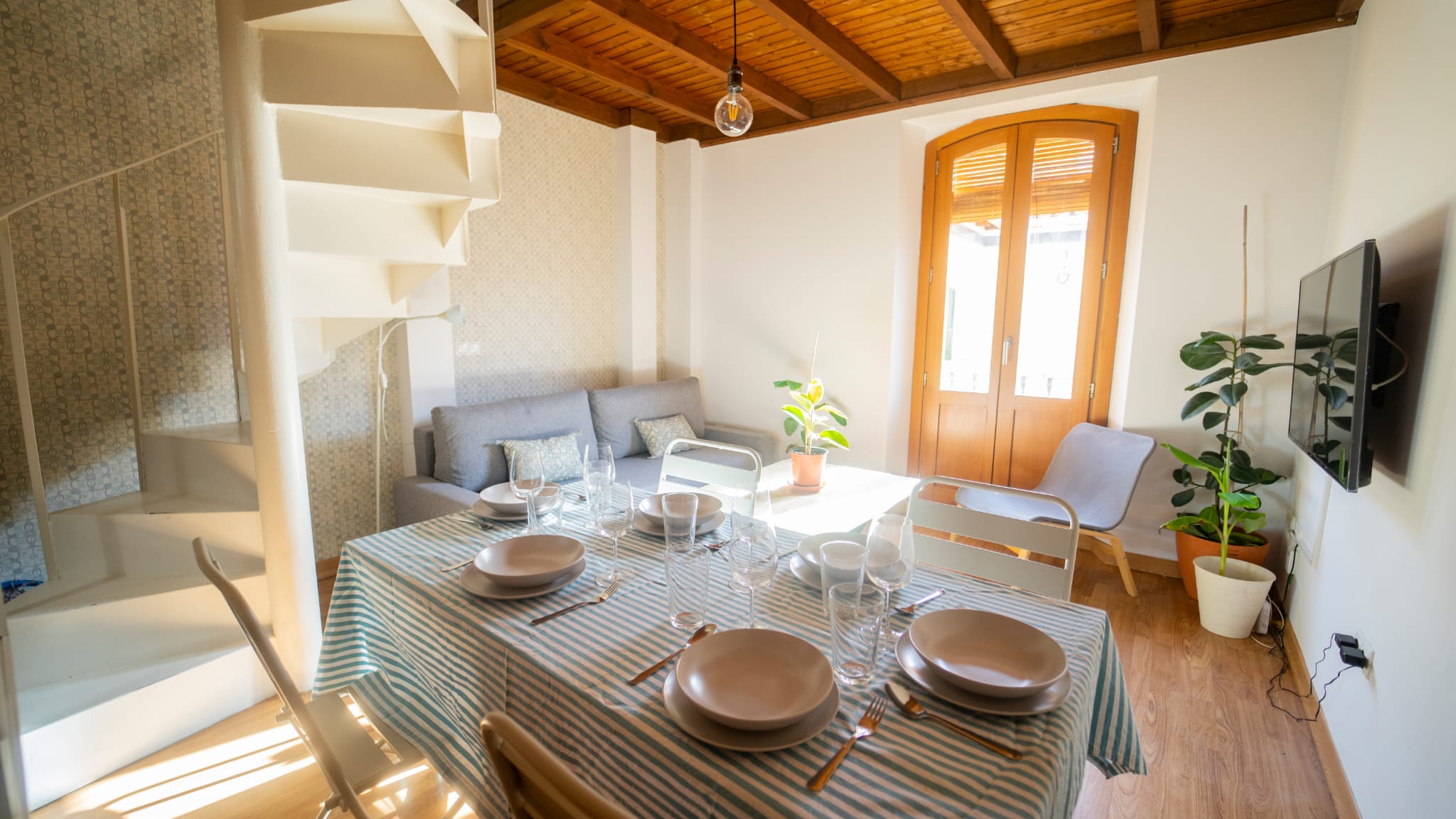 Apartamento tipo dúplex con un diseño moderno y elegante, donde la luz natural es protagonista. Distribuido en dos plantas, ofrece un ambiente acogedor y funcional, ideal para una estancia confortable en el centro de la ciudad.